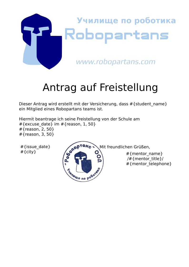 Antrag auf Freistellung templateAntrag auf Freistellunghttp://www.robopartans.comOnly owners of this template can issue certificates from it. |